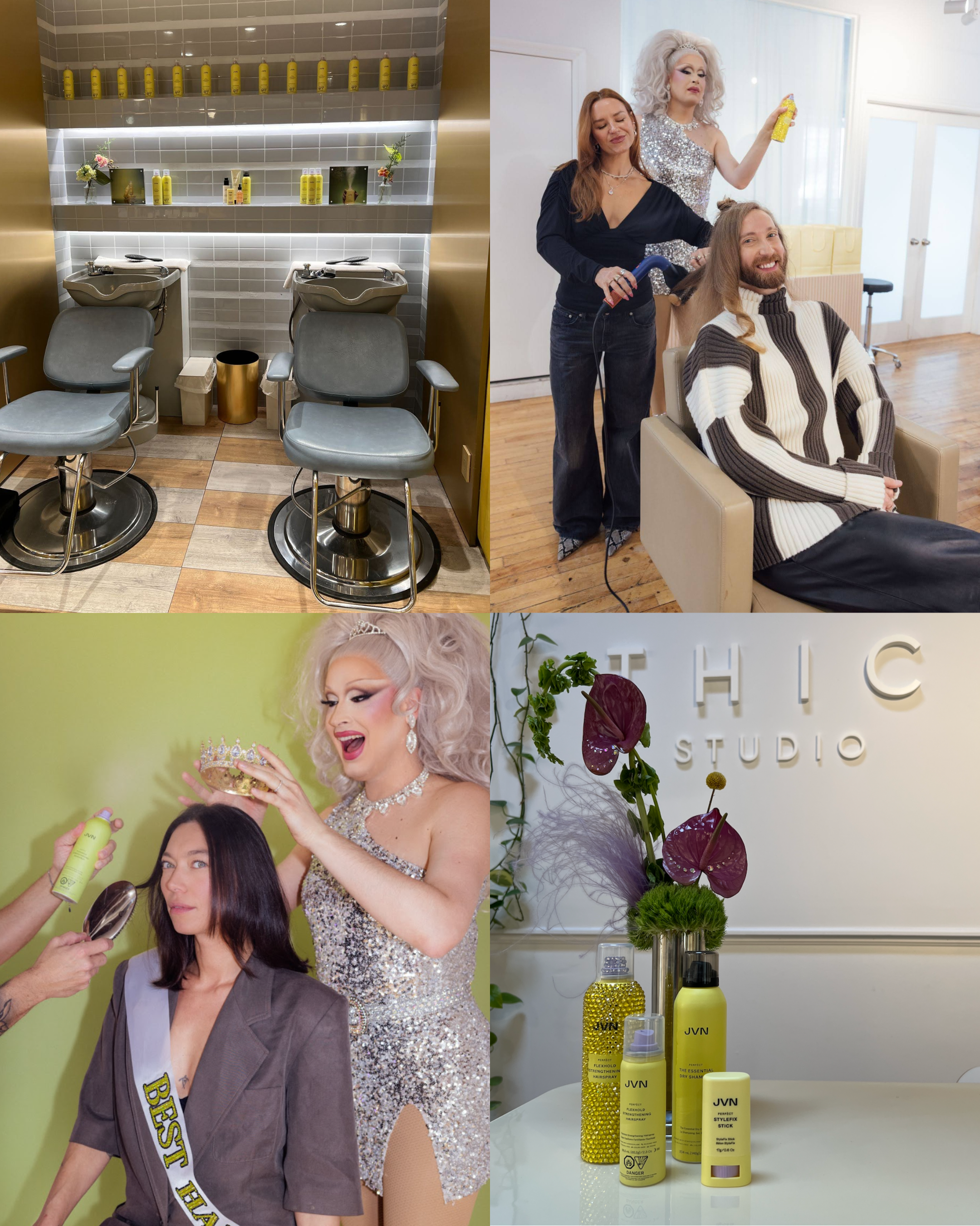 This week, influencers joined us at THIC Studio for an immersive, appointment-style experience featuring a custom styling session with Morgan and the THIC team. Inspired by “pageant hair” (think big volume, high shine, and high-impact finishes,) the event included an on-site photographer to capture iconic headshots, plus a special drag queen guest, Miss Moço, who brought extra energy and personality to the day.